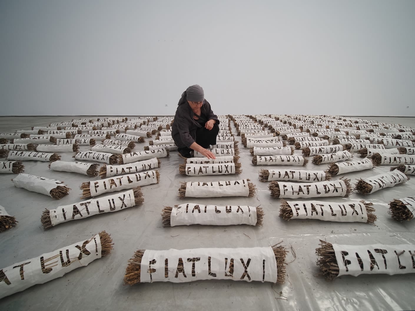 Against the backdrop of humanitarian crises, ecological unraveling, and the estrangements of technological speed, resilience emerges as a pressing and unsettled question: how do we reorganize and endure? In moments of rupture, patterns of shared memory and symbolic structures resurface, offering frameworks through which both self and community may find orientation. Refacerea, Victoria Zidaru’s first solo exhibition with Nicodim Gallery, in collaboration with Suprainfinit Gallery, draws on this symbolic continuum. Resonant with Indigenous cosmologies, Eastern spirituality, and Christian mysticism, the work engages archetypes of healing not as metaphors but as active forces. Herbs cleanse and recalibrate; handwoven cloth embodies continuity, linking past traditions with present practice; inscribed words establish rhythm and attention. For over four decades, Romanian artist Victoria Zidaru has transformed natural materials into living structures of ritual and resilience. Towering columns of hay rise as conduits of energy, herbs release delicate scents, and cloth and text interlace matter and spirit. Her installation unfolds as a shared organism, at once fragile and enduring. Collaboration is central to the exhibition: the woven elements were created with the women of Liteni, while commissioned works by Tudor Cucu (film) and Călin Topa (sound installation) are integrated as essential components. The participatory project Donate a Word invites the public to contribute words that become part of the installation itself. Rather than offering resolutions, Zidaru leaves us with a provocation: if resilience is not merely survival, but inseparable from the consolations of the spirit, where can it be cultivated within the fractures of contemporary life? *text by Adina Drinceanu Victoria Zidaru (b. 1956, Liteni, Romania) is a Romanian artist renowned for her immersive installations and multisensory approach to contemporary art. Her practice encompasses installations, performances, and collaborations with choreographers, musicians, and filmmakers, often engaging vulnerable communities. Over four decades, she has developed a distinctive visual language that integrates plants, weaving techniques, scents, inscribed words, and ritualistic practices to explore the symbolic dialogue between the individual, nature, and community. In 2016, she co-founded Ferma de Arte in Liteni, an art hub connecting art, nature, and community, informed by her earlier experience in a religious community (1987–2006). Recent projects include Refacerea (2025–2026) at Nicodim Gallery, Bucharest; Victoria Zilei (2024–2025) at MARE Museum, Bucharest; Lingua Ignota (2024) at the Istituto della Pietà and Archivi della Misericordia, Venice; Ziua Întâi(2023–2024) at the National Museum of Contemporary Art, Bucharest; Felix Anima (2022) at Palazzo Ca’ Da Mosto, Venice; and Hortus Deliciarum 3 (2019) at the Romanian Cultural Institute, Venice. Her work has been presented in numerous solo and group exhibitions across Romania, Italy, and Europe, including Venice, Vienna, Timișoara, and Seoul.
